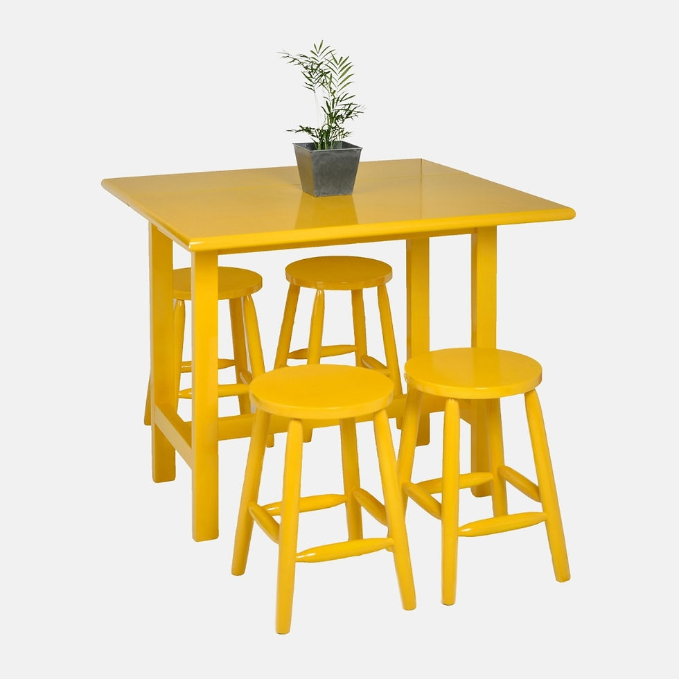Conjunto Mesa Dobrável e 4 Banquetas com Encosto